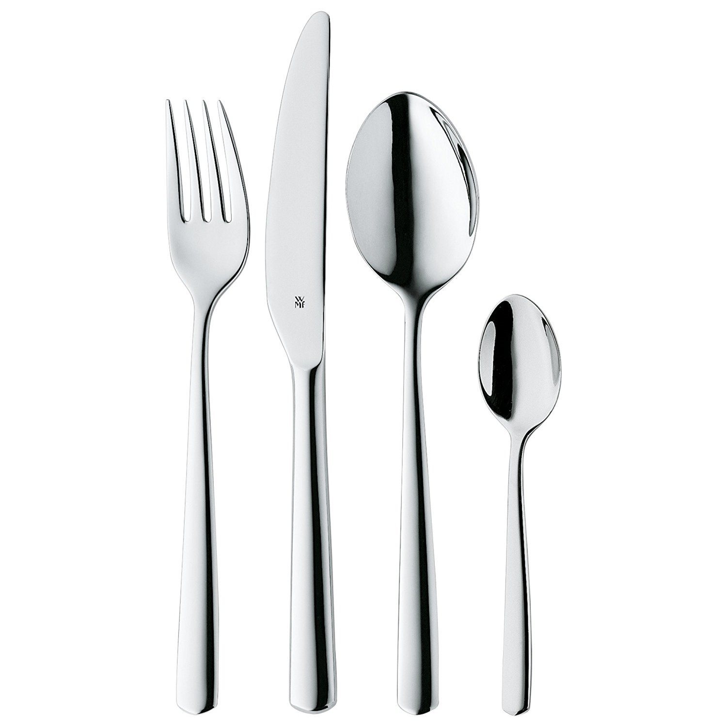 Das Besteck besteht aus poliertem Cromargan® Edelstahl 18/10 , einem äußerst langlebigen und hygienischen Material, das weder rostet noch sich mit der Zeit verzieht. Der von der deutschen Marke WMF, entwickelte Cromargan® Edelstahl ist ein innovatives Material für die Herstellung von Produkten, die häufigem und langfristigem Gebrauch standhalten. Darüber hinaus behält er sein makelloses Aussehen, ist nahezu unzerstörbar und säurebeständig. Die Oberfläche von Produkten aus diesem Material bleibt glatt, glänzend und kratzfrei, und auch nach längerem Gebrauch sind Abnutzungsspuren kaum oder kaum sichtbar.