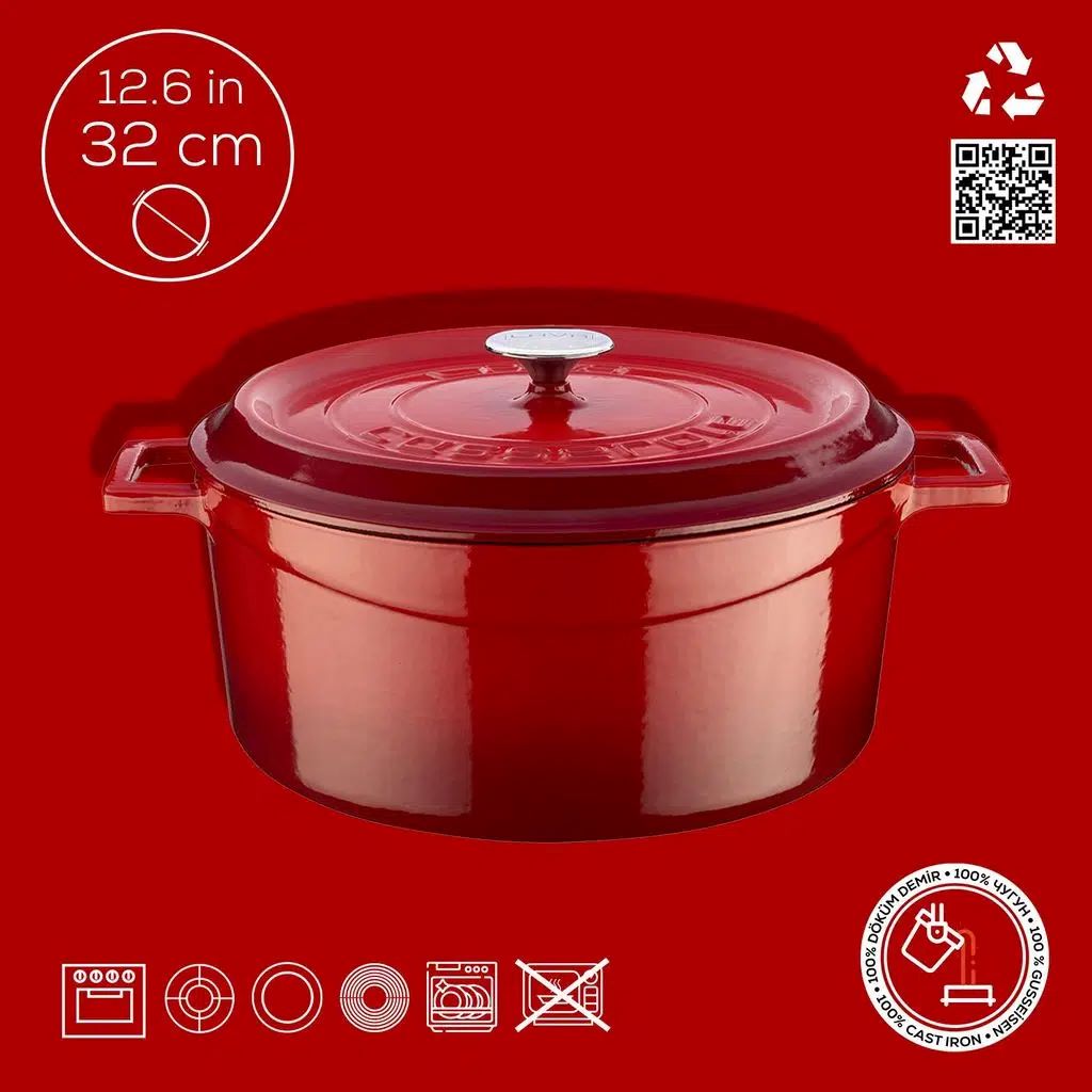 Topf der Marke Lava, Durchmesser 32 cm, Fassungsvermögen 9,86 l, aus Gusseisen.