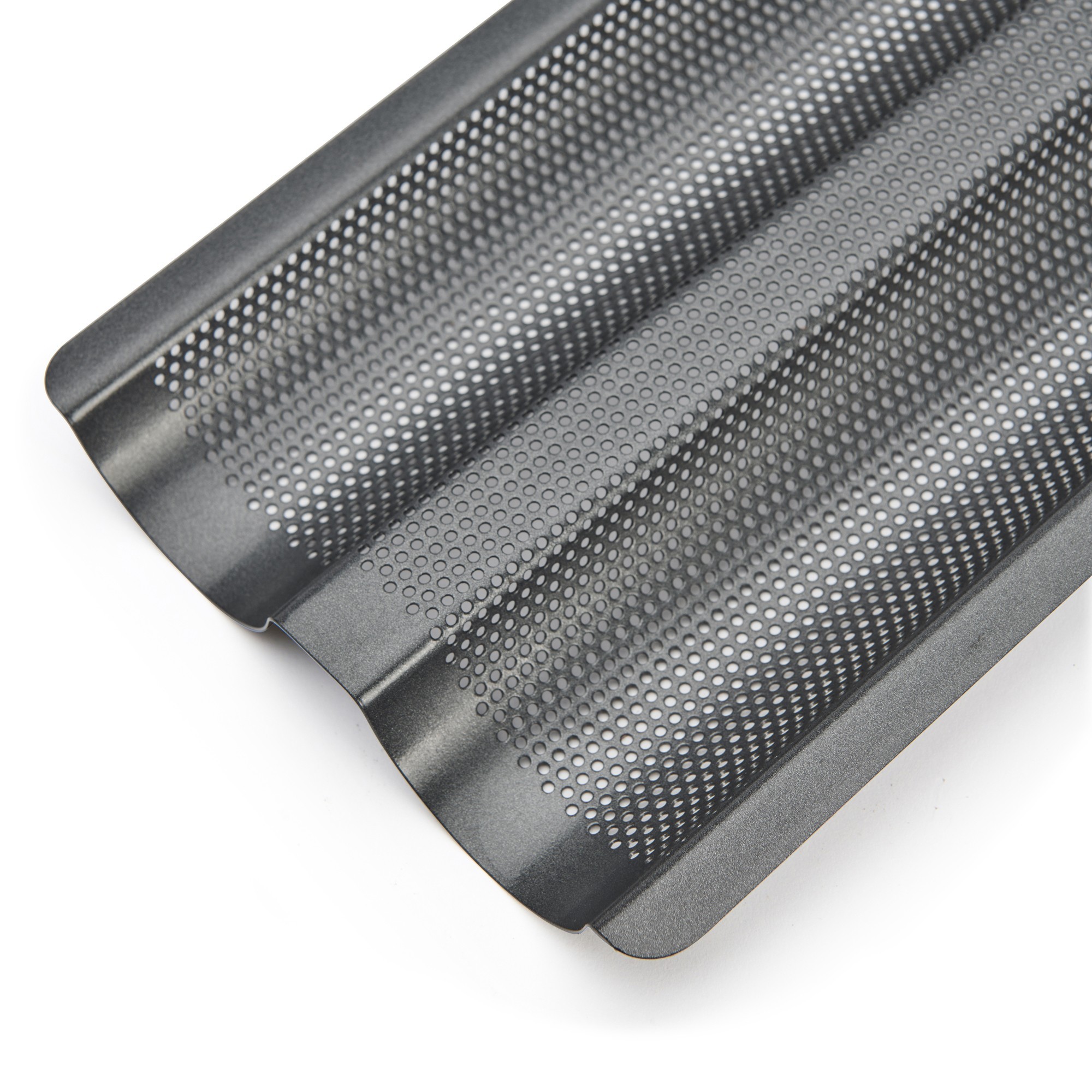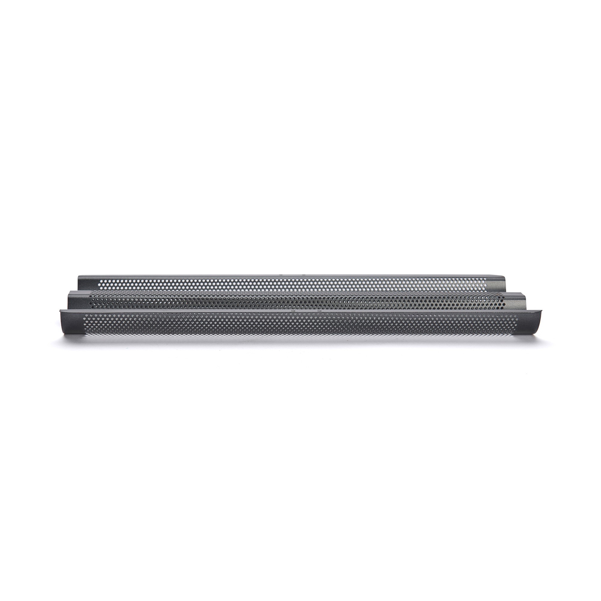 Die Perforationen ermöglichen die Zirkulation warmer Luft, so dass sich die Backform schnell aufheizt und hohe Temperaturen erreicht, sodass die Baguettes karamellisieren und eine knusprige Kruste bekommen können. Selbstverständlich wird die Hitze gleichmäßig verteilt, um ein gleichmäßiges Backen zu gewährleisten.