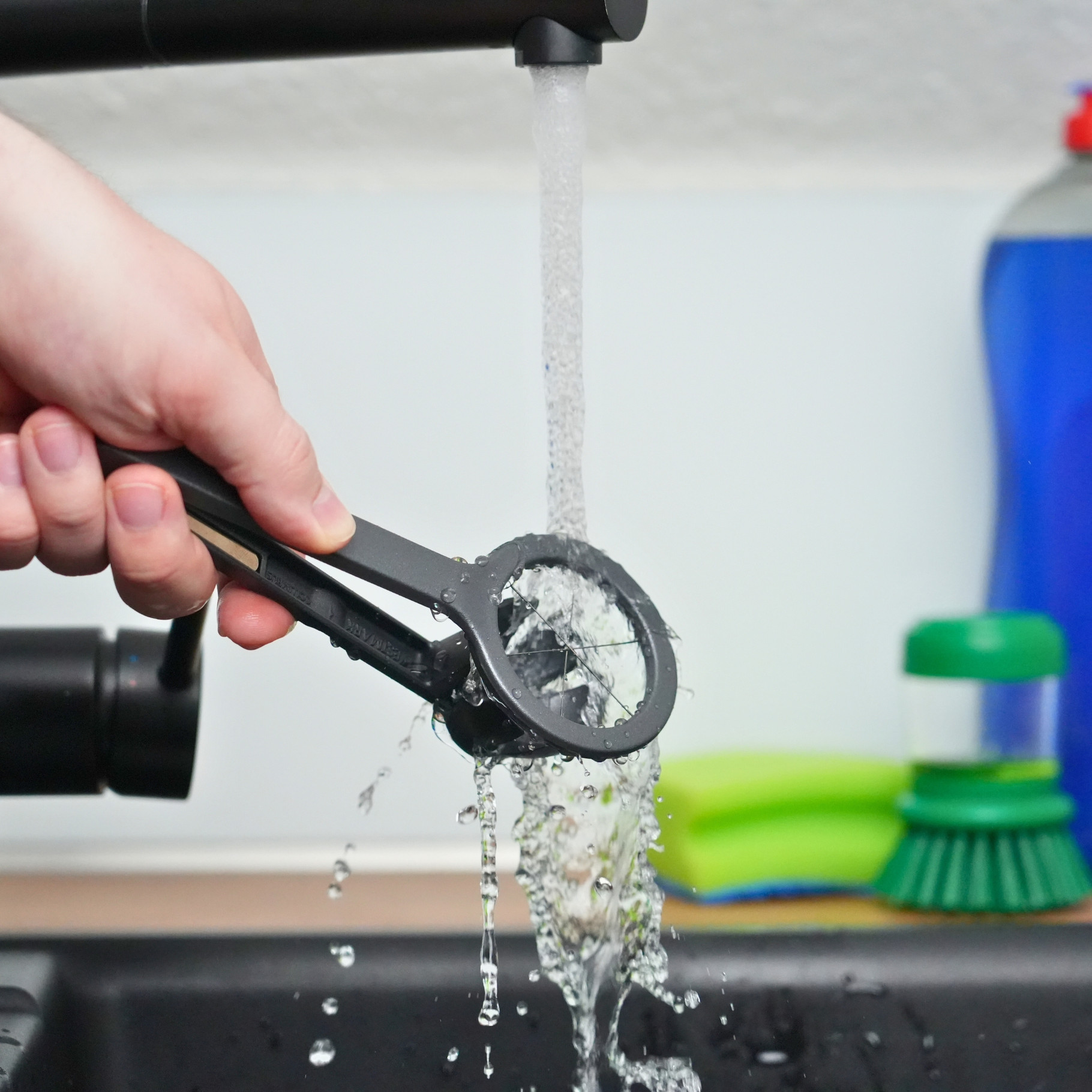 Der Hobelkörper ist mit einer Antihaftbeschichtung versehen, die die Handhabung erleichtert.