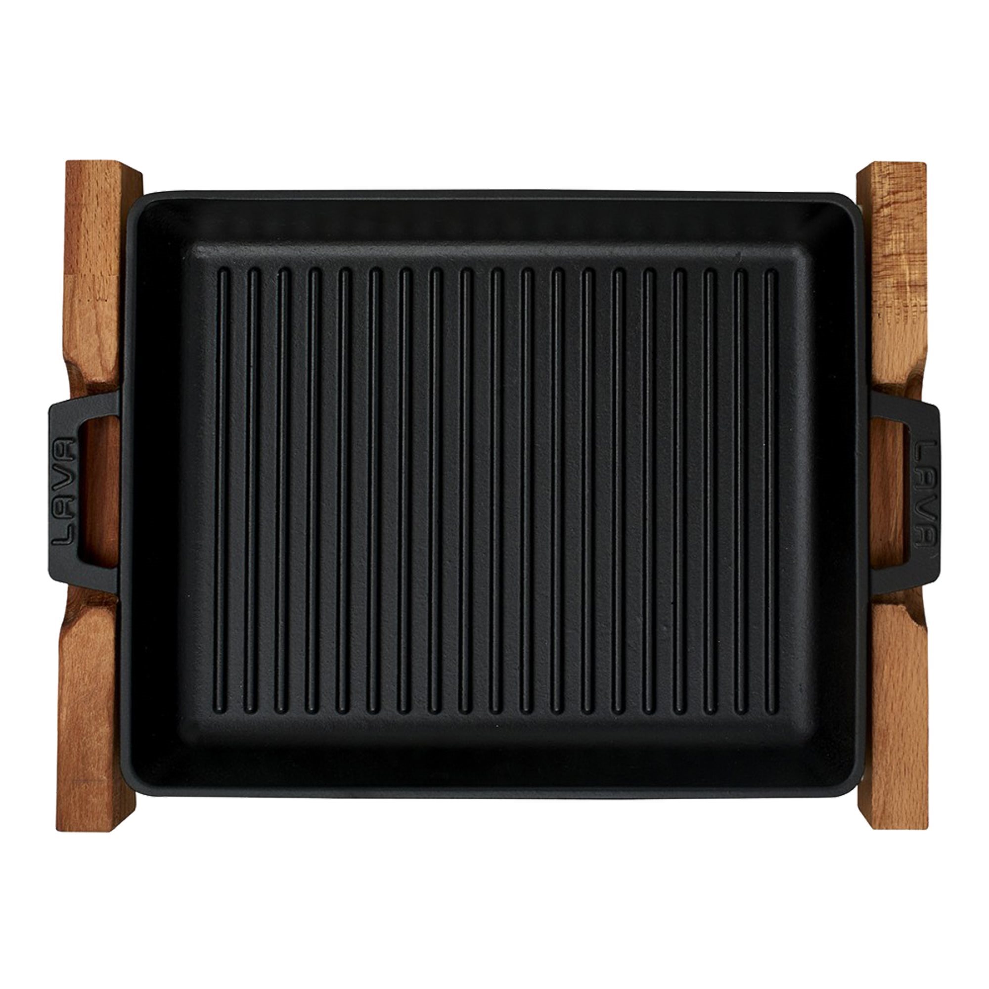 Grillschale mit Holzständer, Maße 26 x 32 cm, aus Gusseisen, Marke Lava