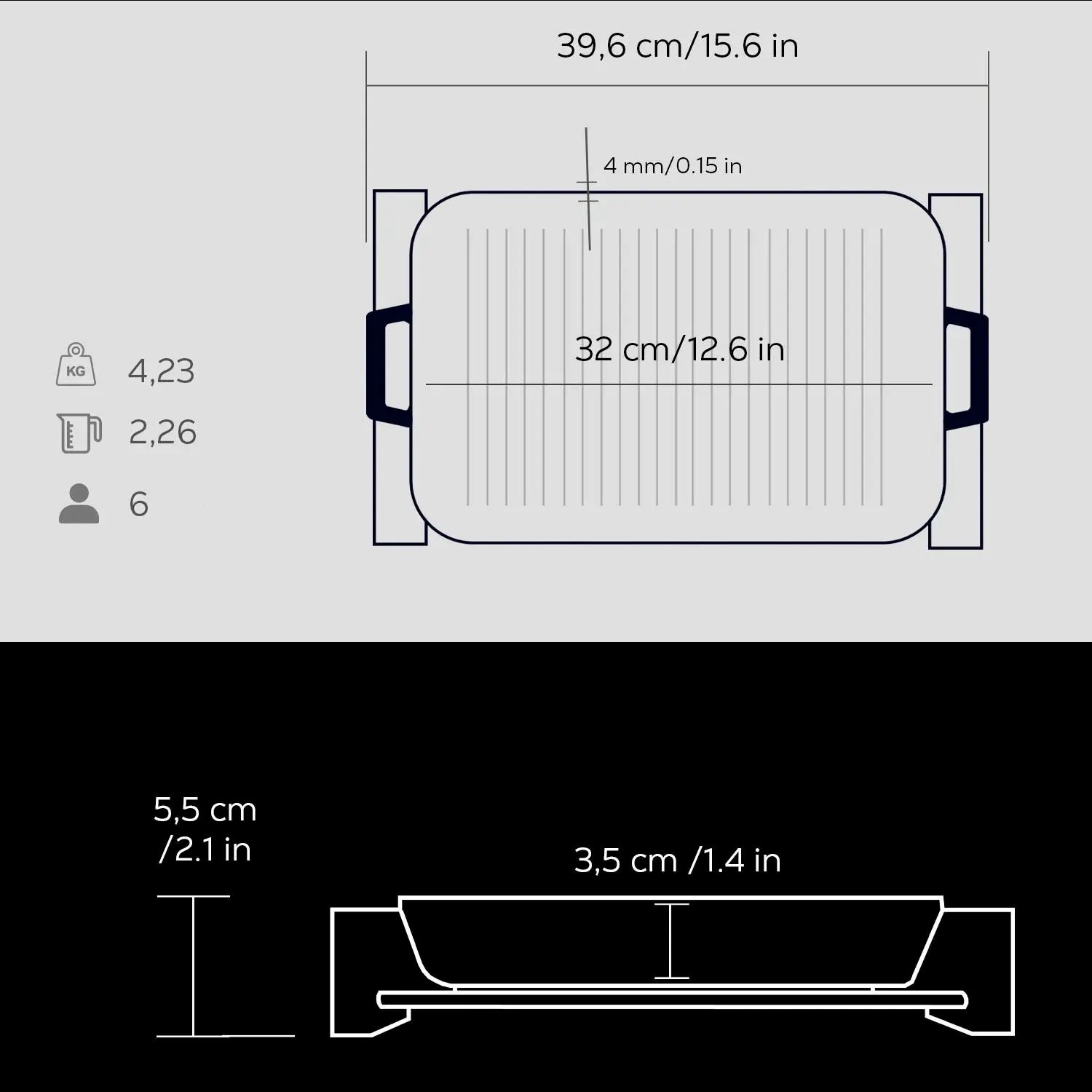 Die Schalenwände sind 4 mm dick und das Produkt ist innen mit einer Schicht schwarzer Emaille beschichtet, die beim Braten mit Fett die Bildung einer Antihaft-Oberfläche erleichtert.