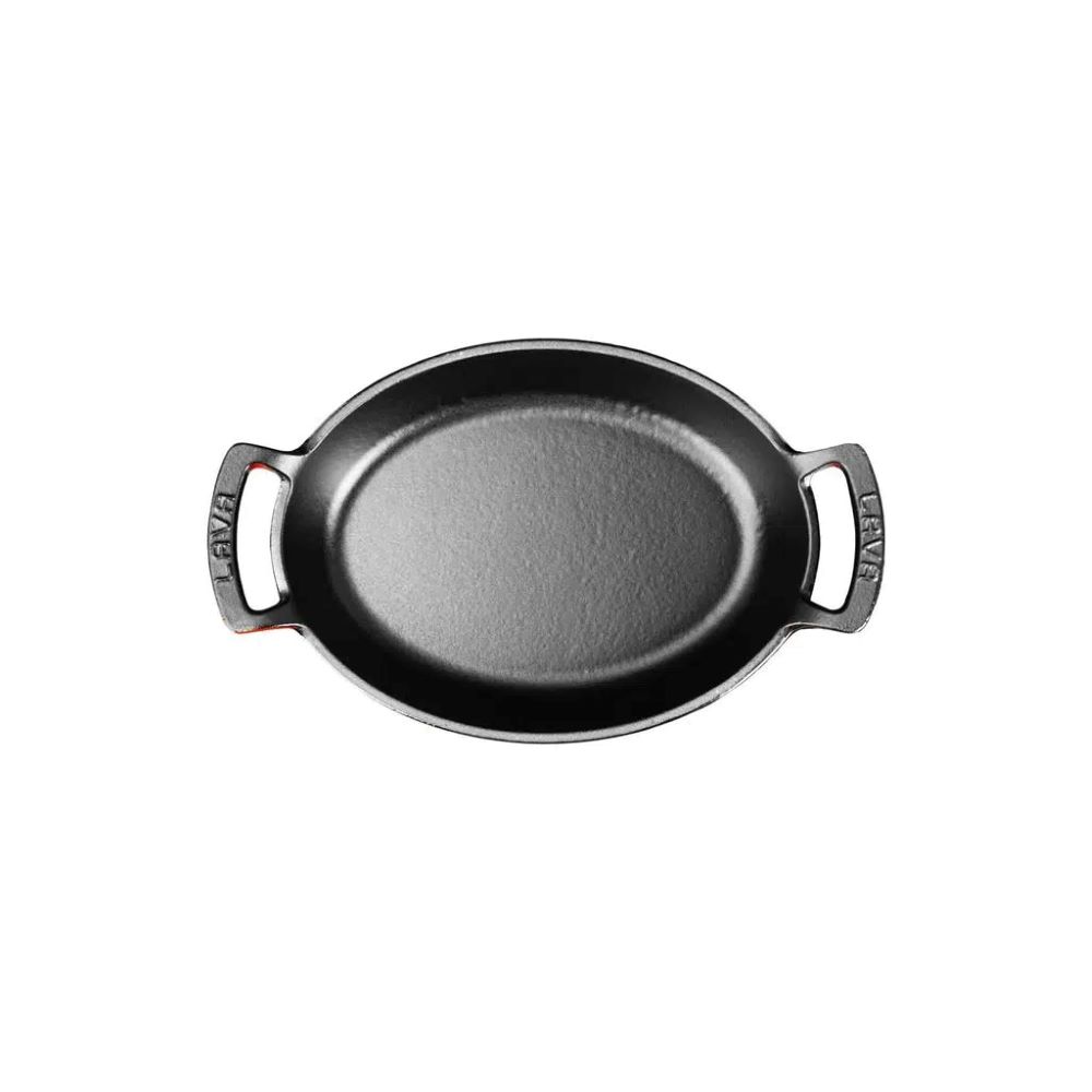 Ovale Gusseisenpfanne, Innenmaß 19 x 14 cm, Fassungsvermögen 0,54 l, aus Gusseisen, Marke Lava