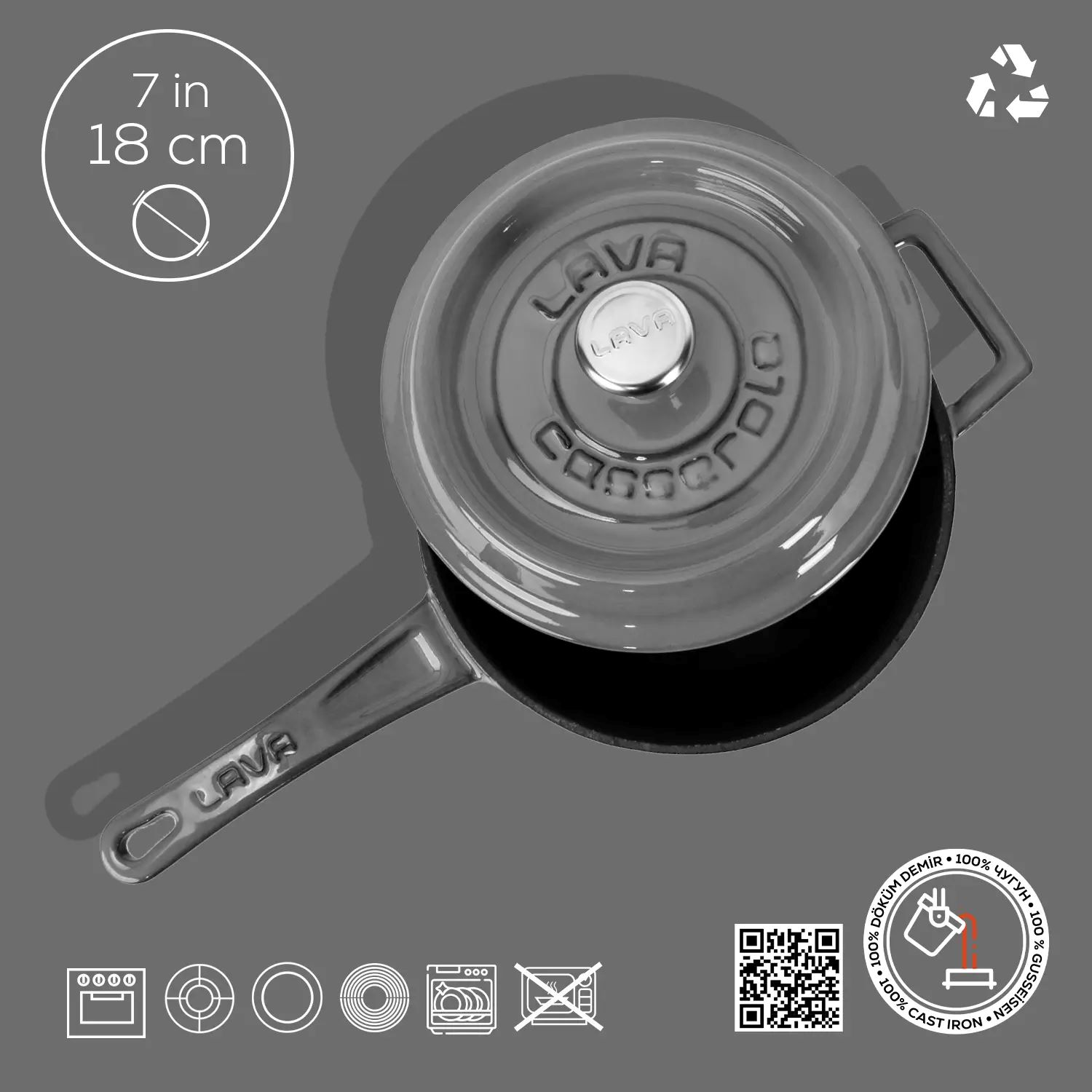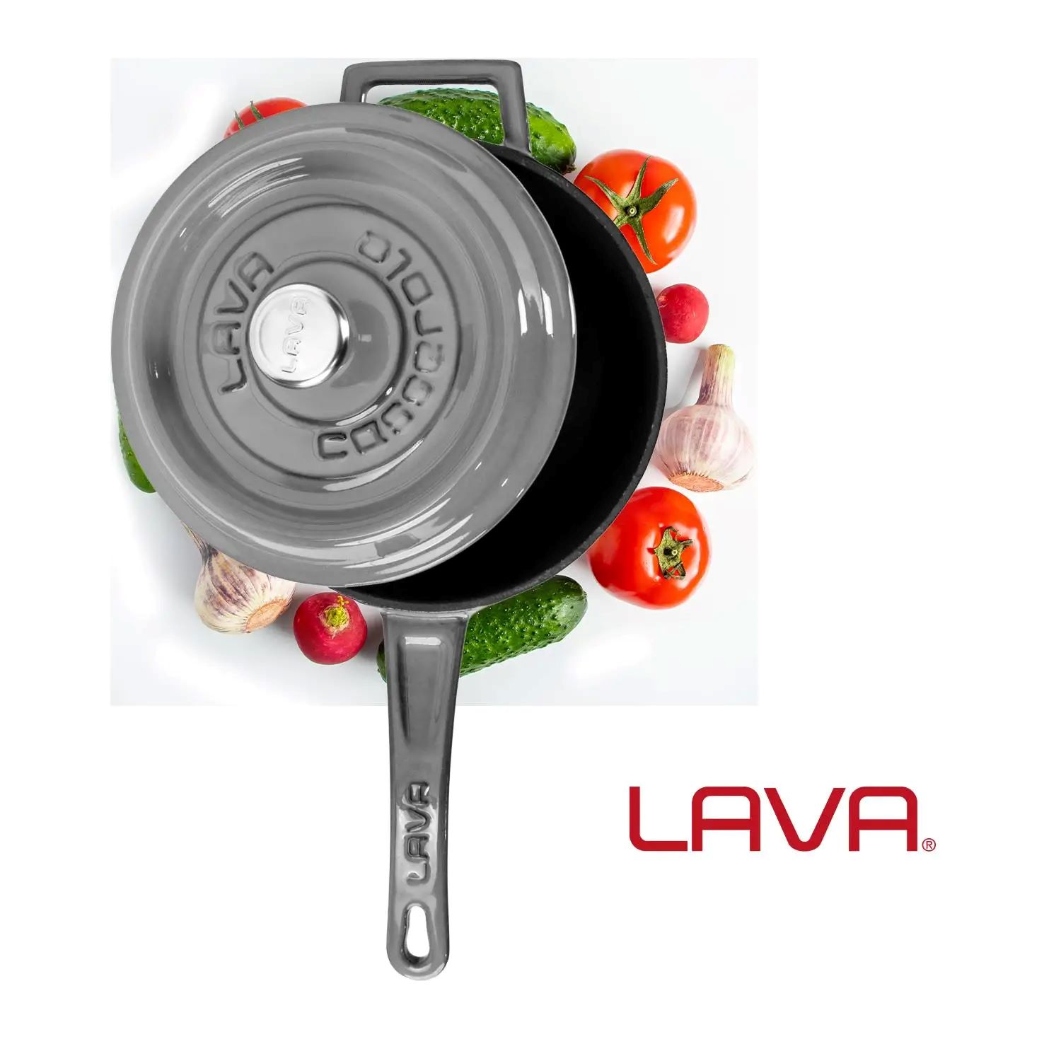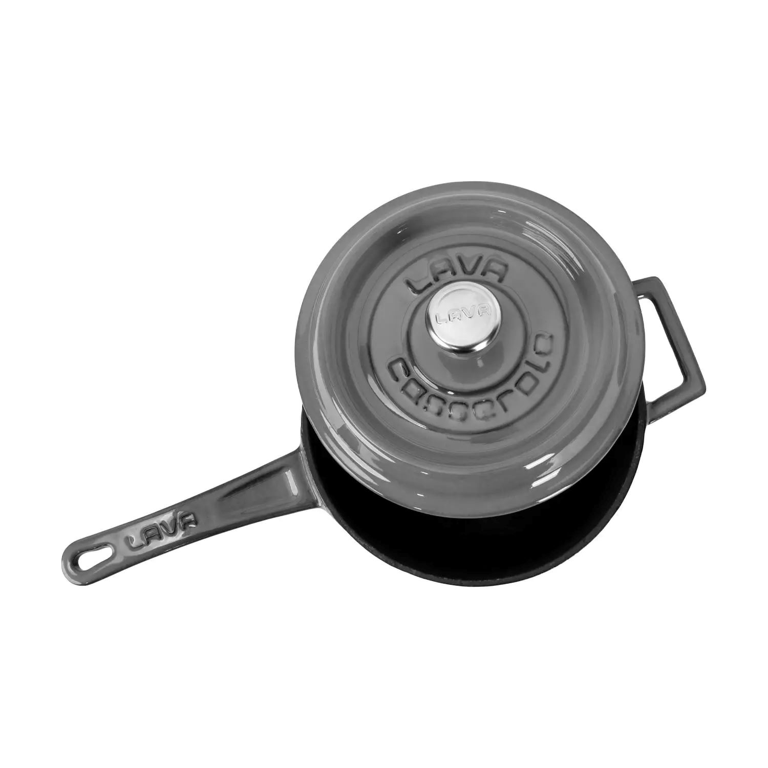 Hoher Topf mit Deckel, emailliertes Gusseisen, Durchmesser 18 cm, Fassungsvermögen 3,2 l, Marke Lava