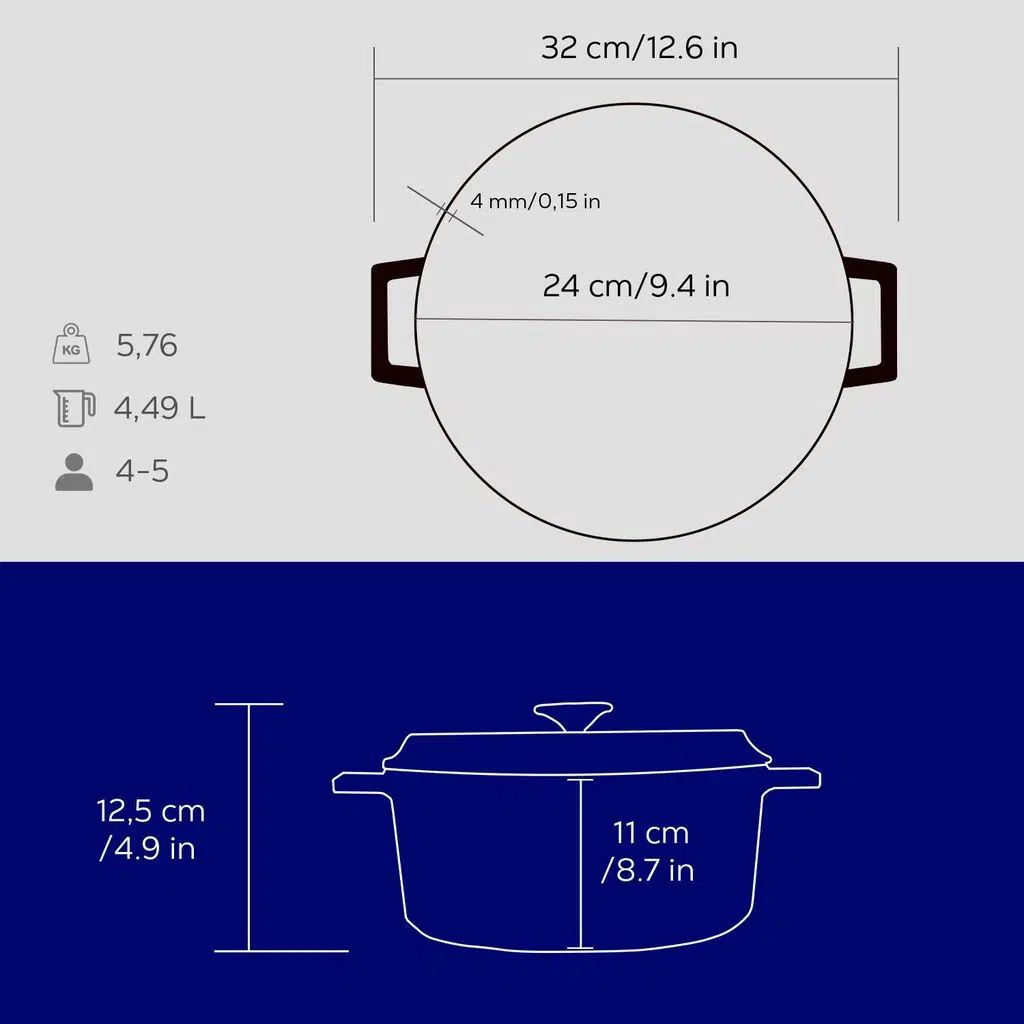 Gusseisen ist ein Material, das sich langsam erhitzt, aber nach dem Erhitzen die Wärme sehr gut für eine lange Zeit speichert. Somit eignet sich das Kochgeschirr für die meisten Kochtechniken, sei es Braten, Slow Cooking oder Ofengaren.