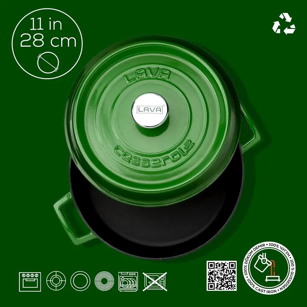 Topf mit Deckel, Durchmesser 28 cm, Fassungsvermögen 3,5 L, aus Gusseisen, Marke Lava