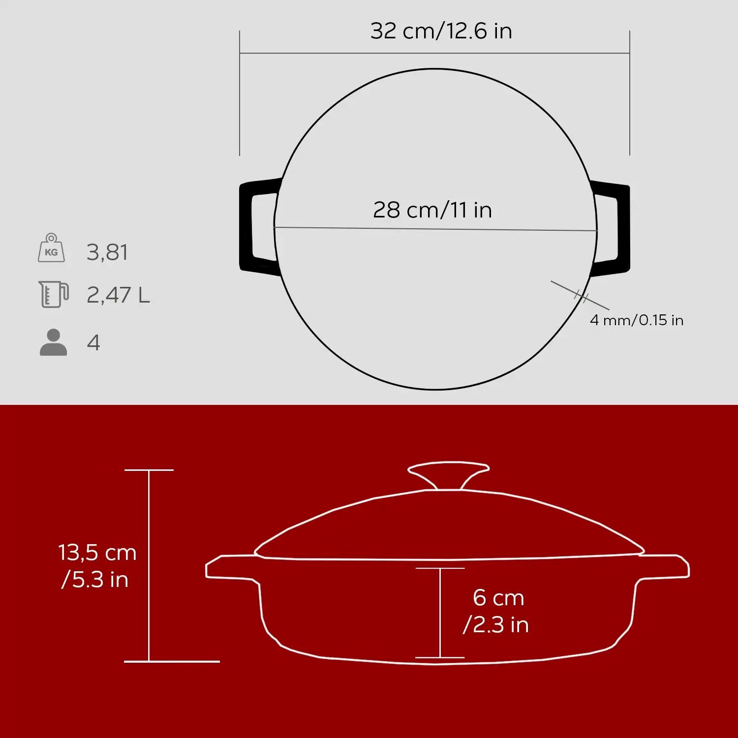 Die Dicke der Basis beträgt 5 mm,wodurch Lava Kochgeschirr auf allen Arten von Kochfeldern, einschließlich Induktionskochfeldern, verwendet werden kann.