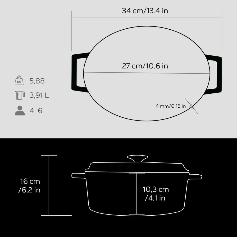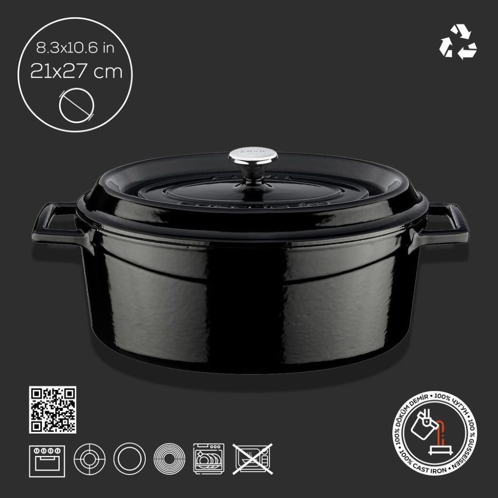 Ovaler Kochtopf, Durchmesser 27 cm, Fassungsvermögen 3,91 L, aus Gusseisen, Marke Lava