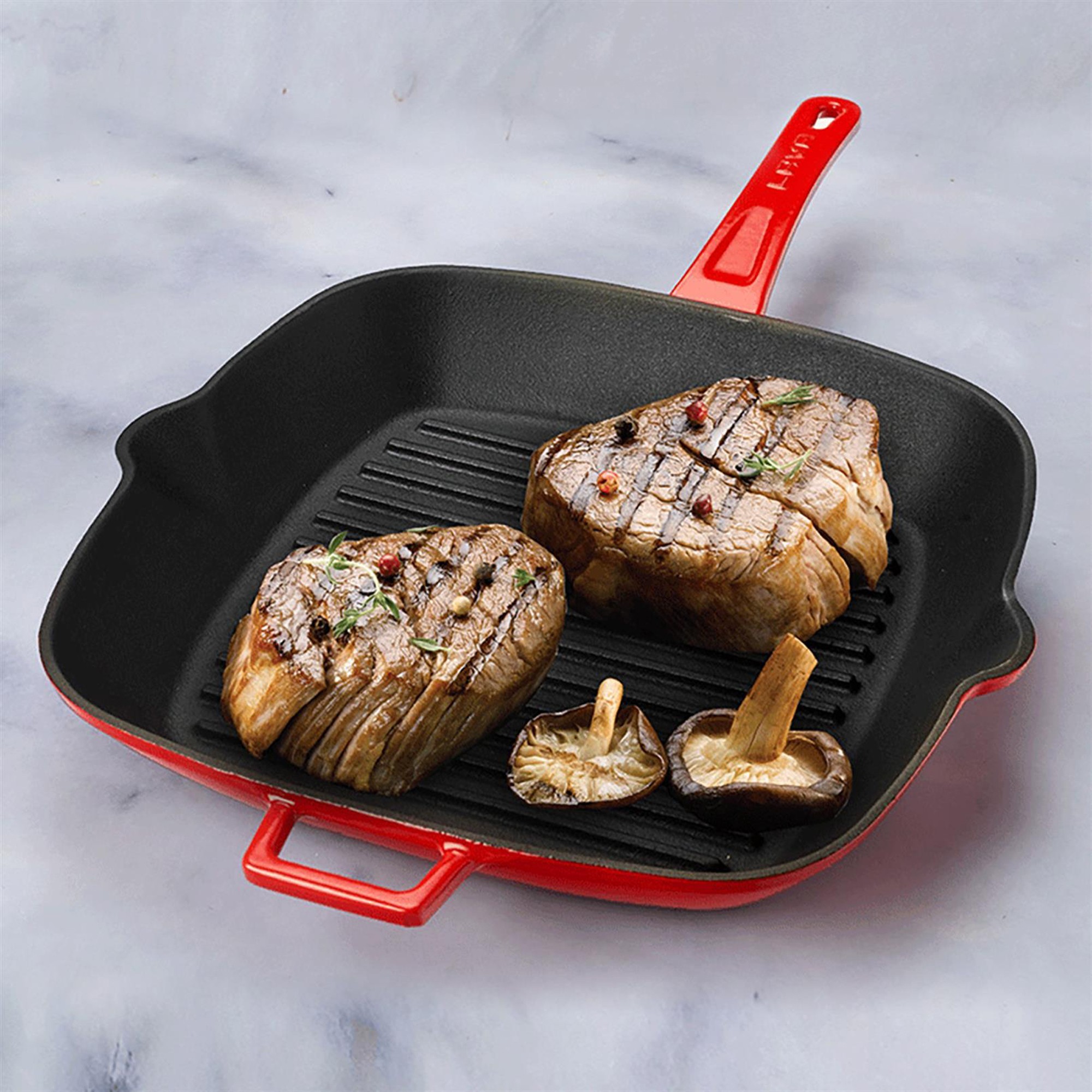 Quadratische Grillpfanne, Marke Lava, Abmessung 28 x 28 cm, aus Gusseisen.