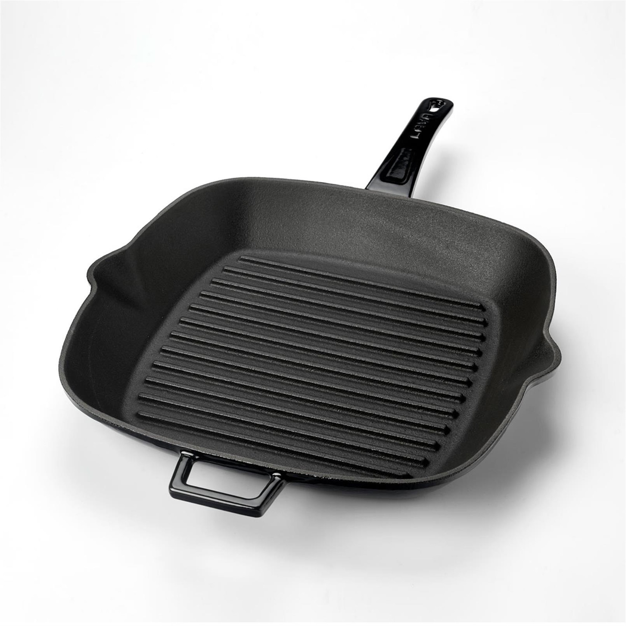 Quadratische Grillpfanne, Marke Lava, Abmessung 28 × 28 cm, aus Gusseisen.