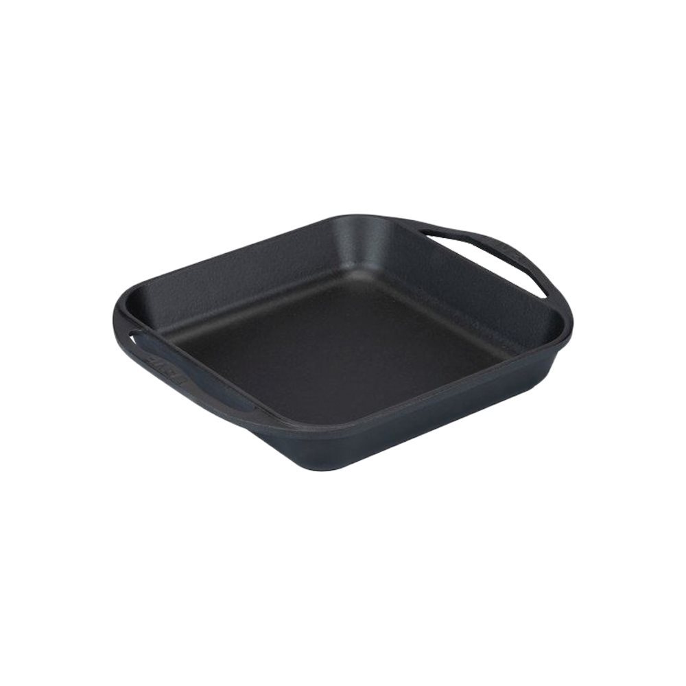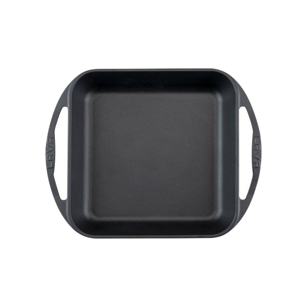 Quadratische Kochpfanne, hergestellt von Lava, Größe 26 × 26 cm, Fassungsvermögen 2,51 l, aus Gusseisen.