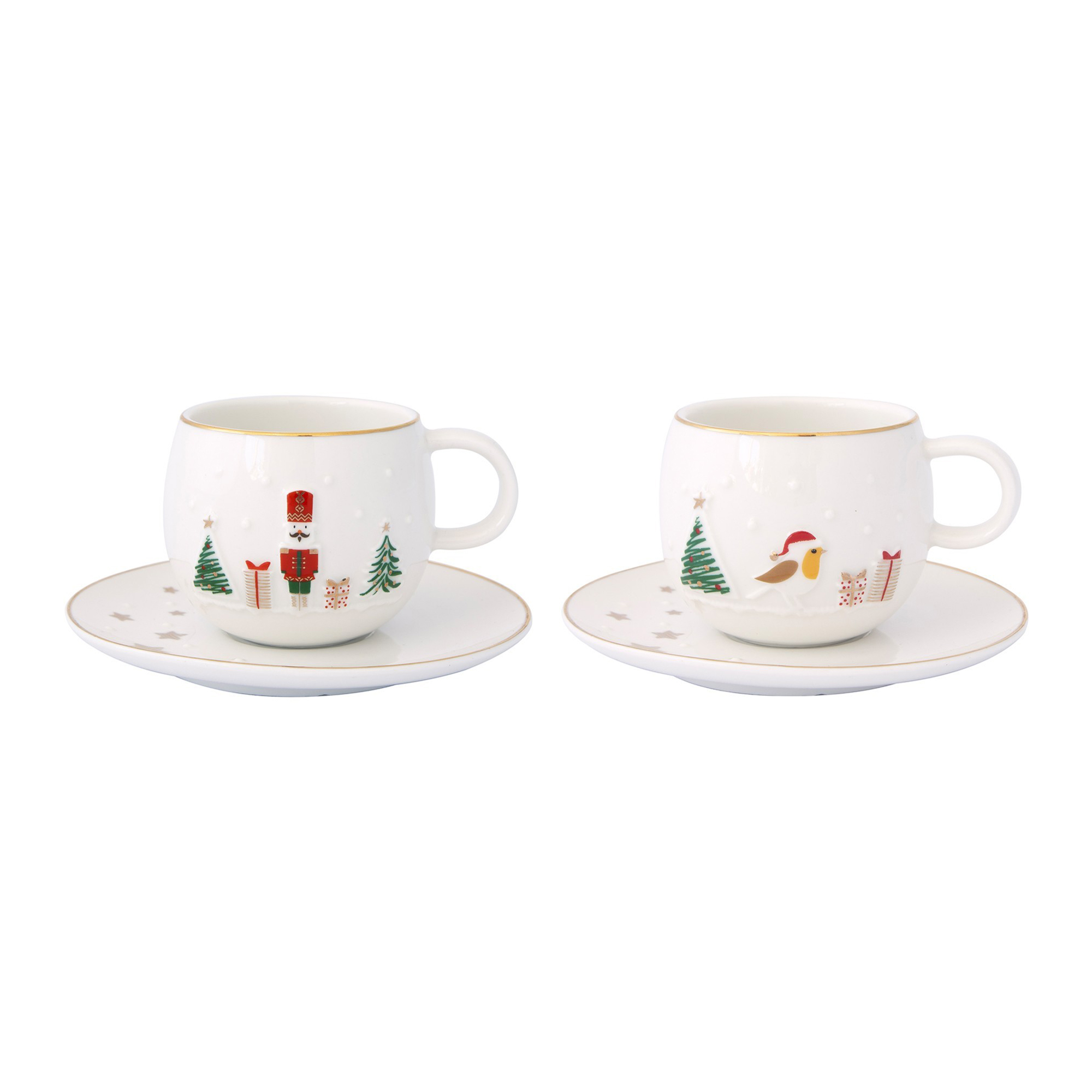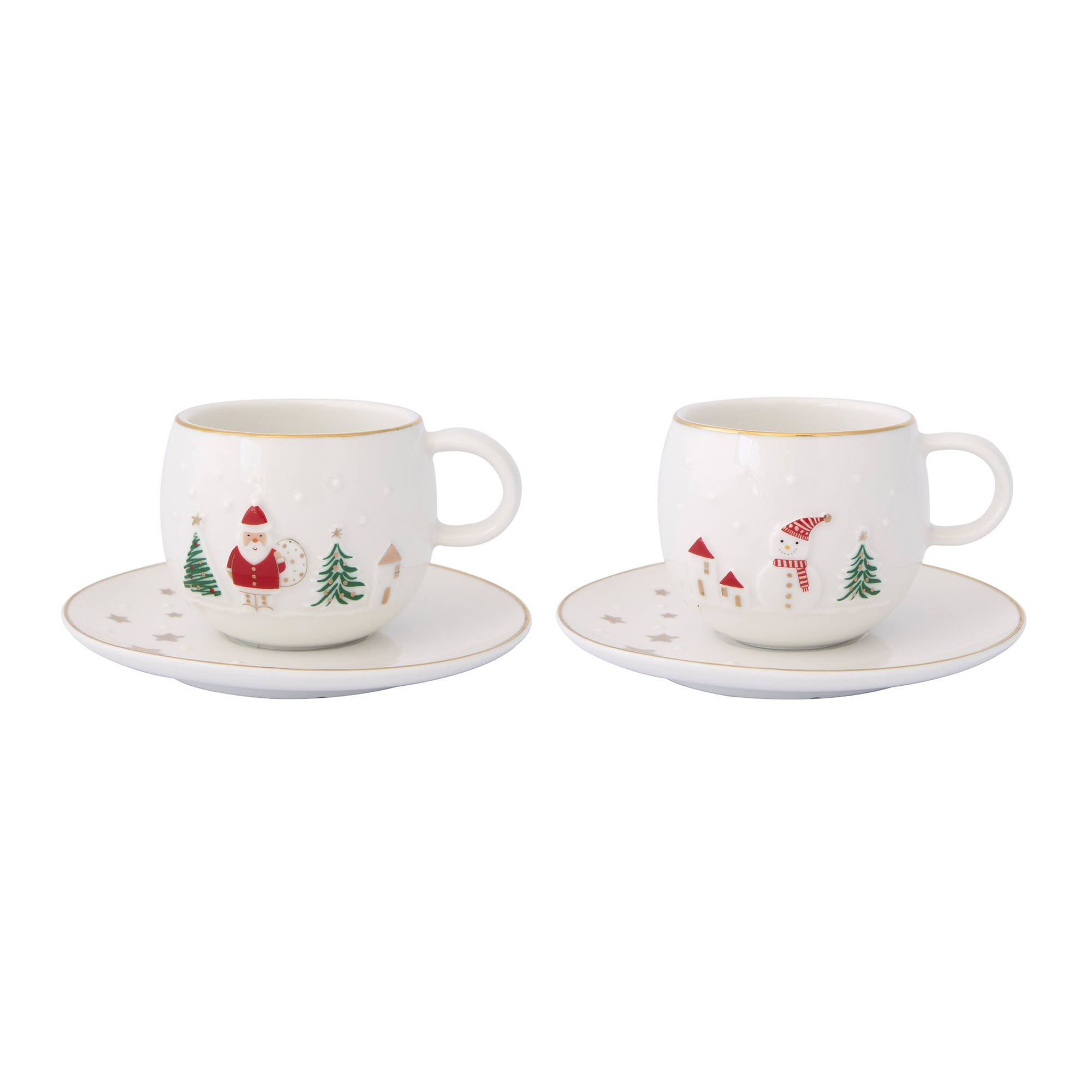 Set mit 2 Tassen mit Untertassen, aus Porzellan, mit einem Einzelfassungsvermögen von 120 ml, aus der "Let it Snow" Kollektion, hergestellt von Nuova R2S.