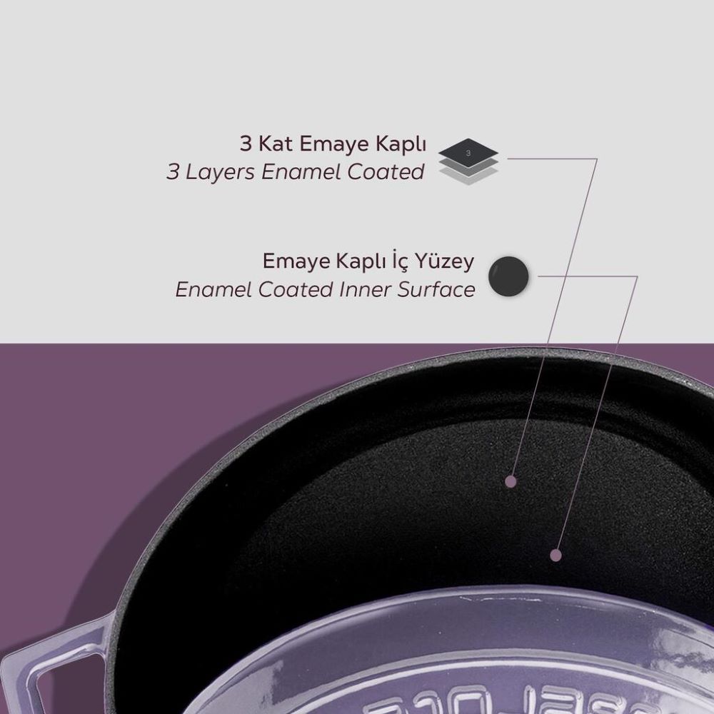 Das Glasemaille, das Material für die äußere Veredelung des LAVA Gusseisenkochgeschirrs, wird durch Aufsprühen von Glaspulver bei Temperaturen von 750 – 850 °C gewonnen. Das Glaspulver haftet an der Oberfläche des Topfes und bildet eine Schutzschicht, die zudem zu einer optimalen Wärmeverteilung beiträgt.