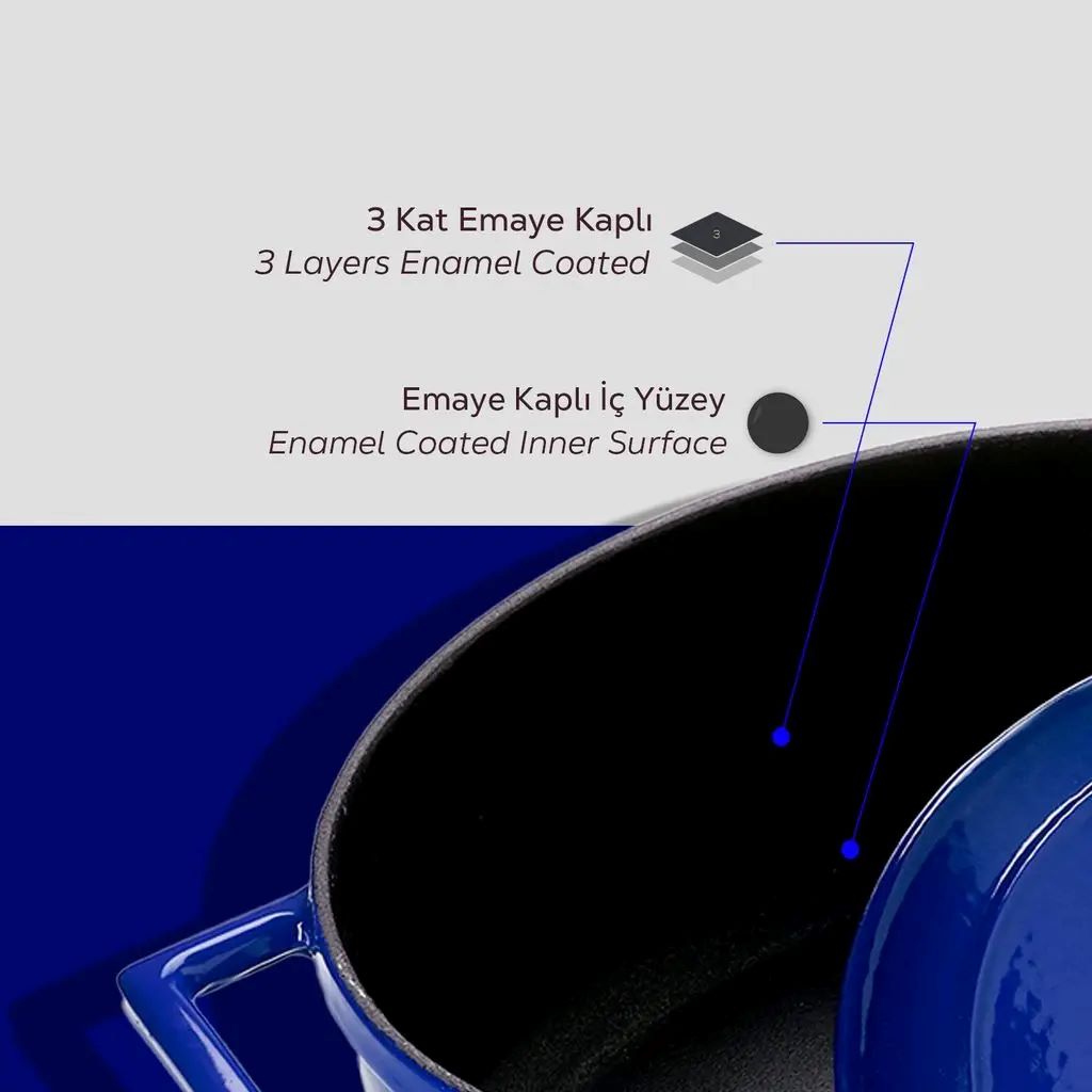 Das Glasemaille – das Material, das für die äußere Veredelung des Lava Gusseisenkochgeschirrs verwendet wird – wird durch Aufsprühen von Glaspulver bei Temperaturen von 750 – 850 °C hergestellt. Das Glaspulver haftet an der Oberfläche des Kochtopfs und bildet eine Schutzschicht, die außerdem zu einer optimalen Wärmeverteilung beiträgt.