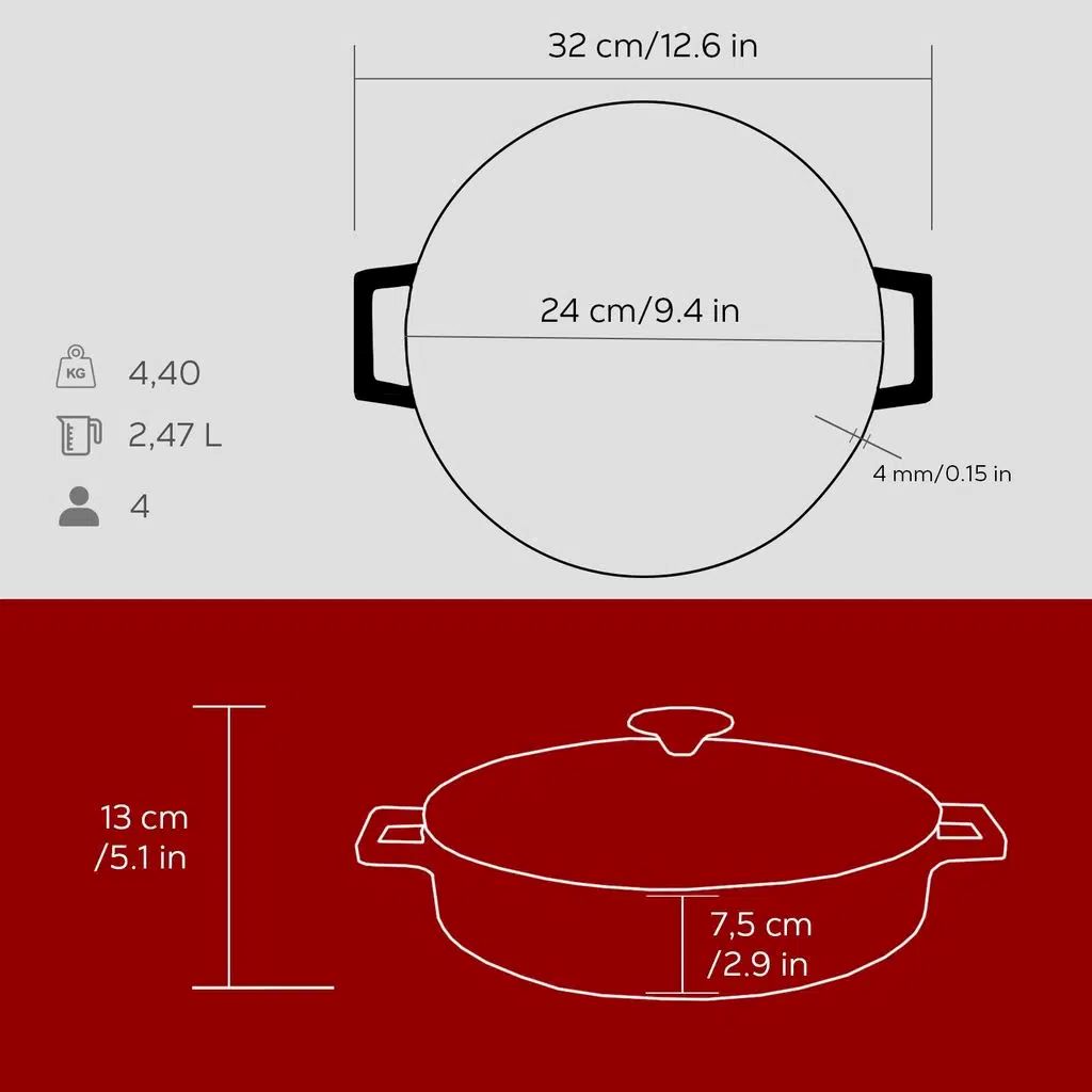 Gusseisen ist ein Material, das sich langsam erwärmt, aber sobald es erhitzt ist, speichert es die Wärme sehr gut für eine lange Zeit. Somit eignet sich das Kochgeschirr für die meisten Kochtechniken, sei es Braten, Slow Cooking oder Ofenkochen.