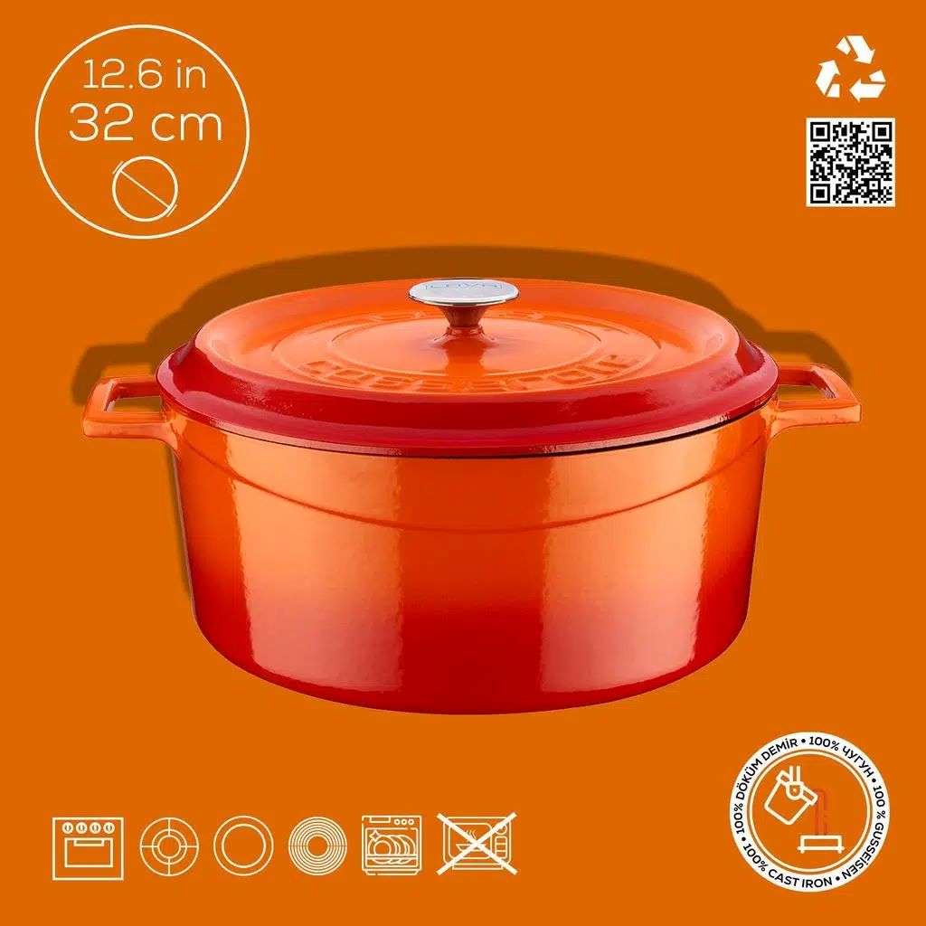 Topf der Marke Lava, Durchmesser 32 cm, Fassungsvermögen 9,86 l, aus Gusseisen.
