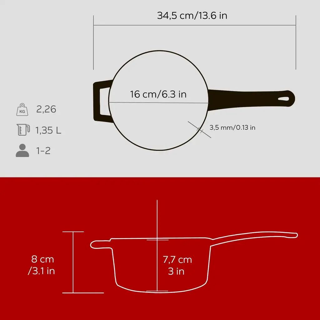 Topf mit Griff und Deckel, zum Servieren von Sauce, Marke Lava, Durchmesser von 16 cm,Fassungsvermögen von 1,35 L,aus Gusseisen.