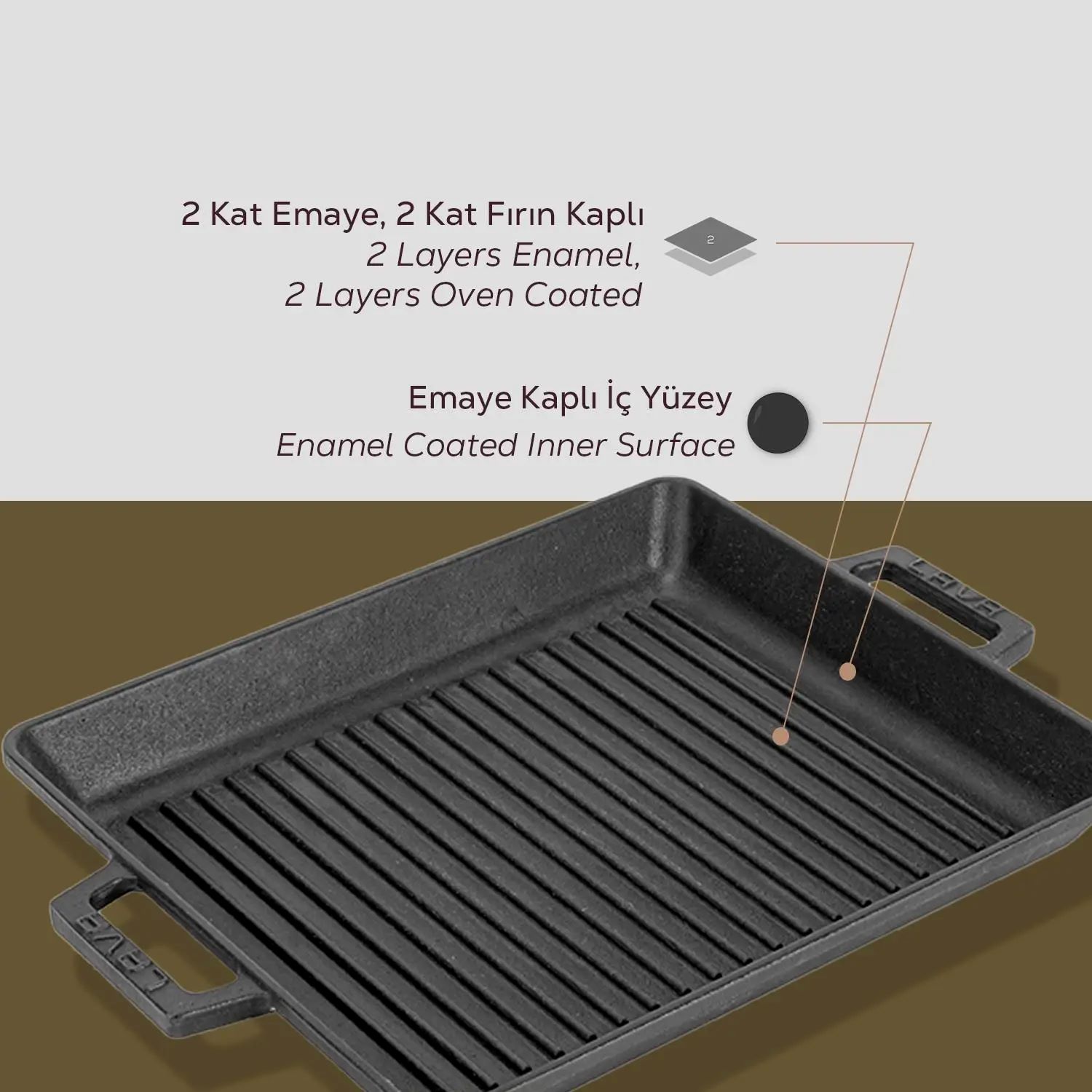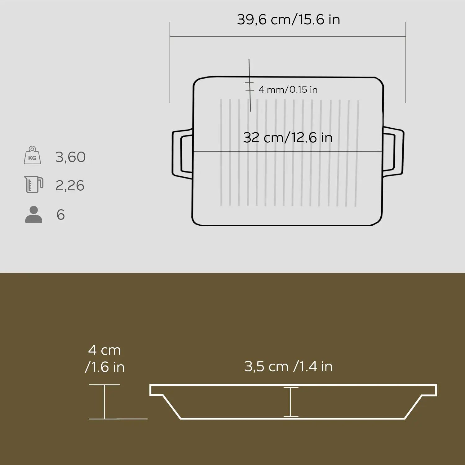 The tray walls are 4 mm thick and, on the inside, the product is coated with one layer of black enamel that facilitates the formation of a non-stick surface when cooking with grease.