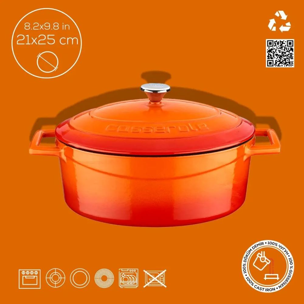Oval-shaped saucepan, Lava brand, diameter of 25 cm, capacity of 3.2 l, manufactured from cast iron.