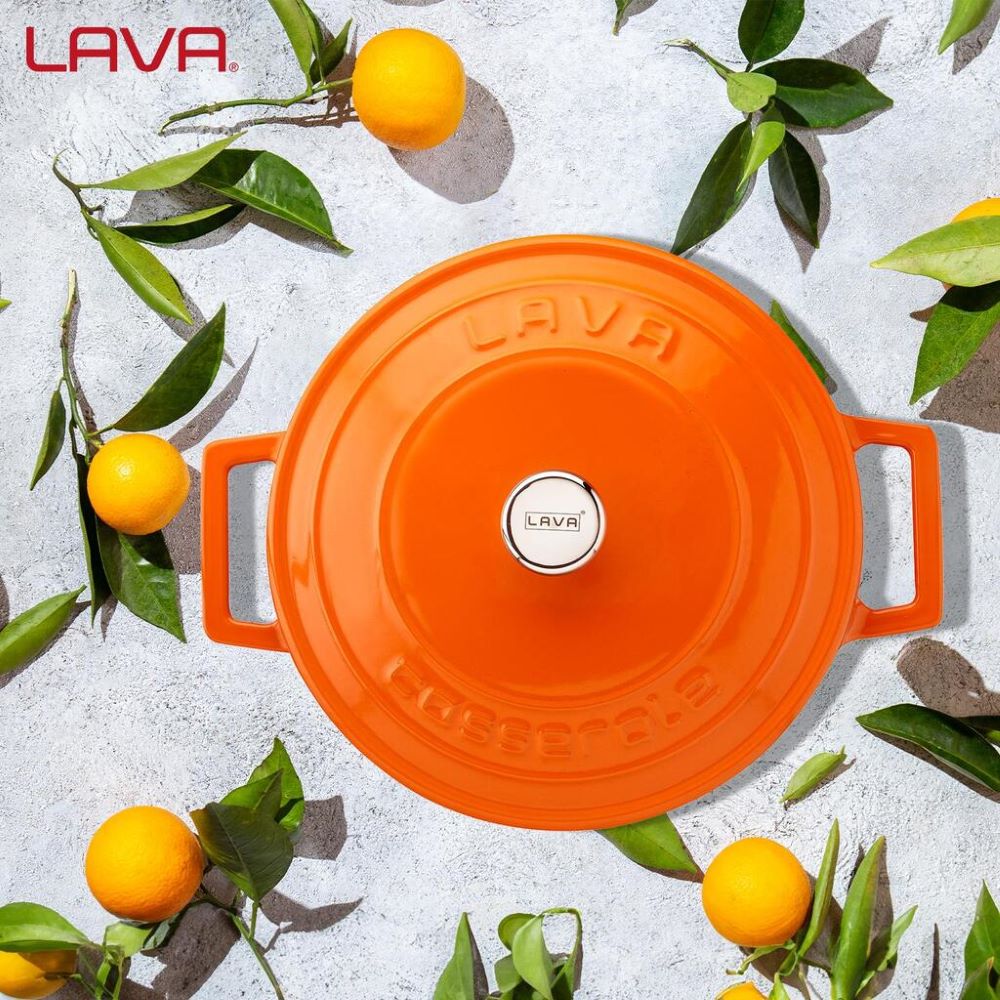 The vitreous enamel, the material used for the outer finishing of the LAVA cast iron cookware is obtained by spraying glass powder at temperatures of 750 - 850°C. The glass powder adheres to the surface of the saucepan creating a protective layer that also helps to optimally distribute heat.