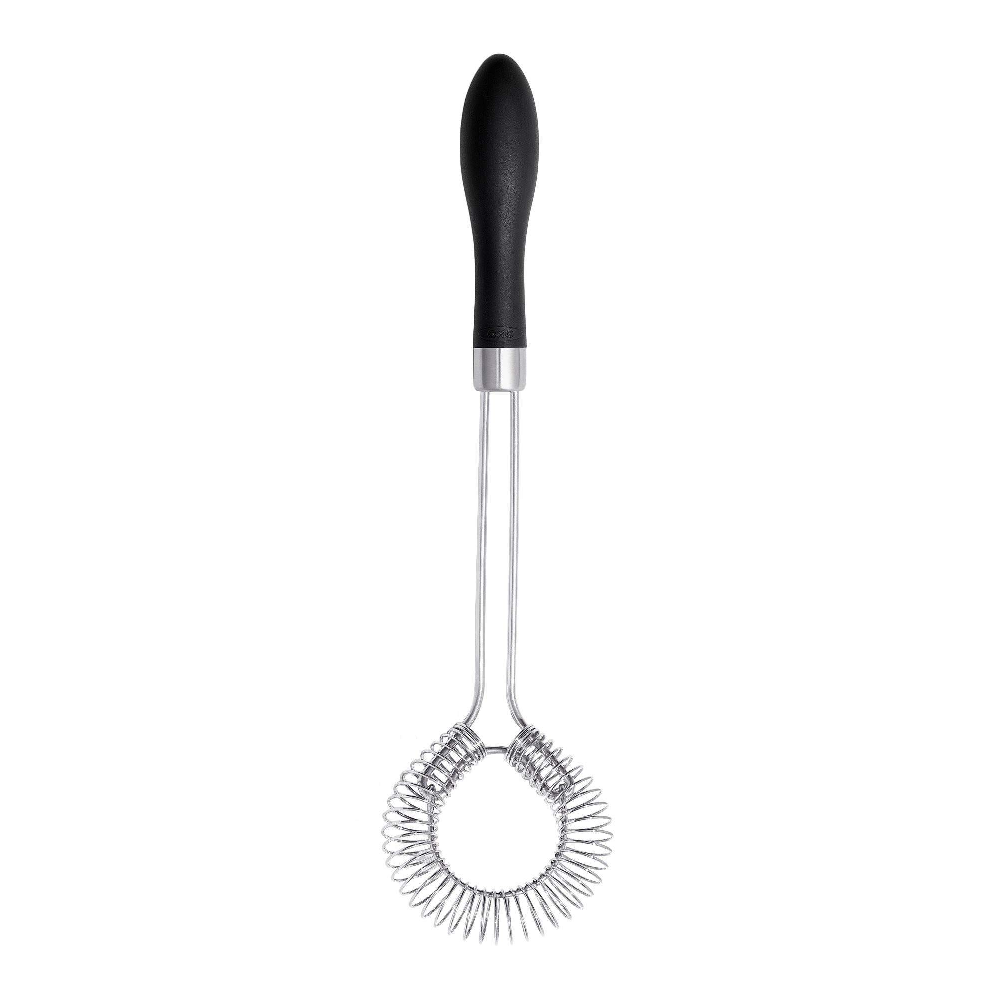 Whisk, suitable for preparing sauces, made of stainless steel, OXO brand.