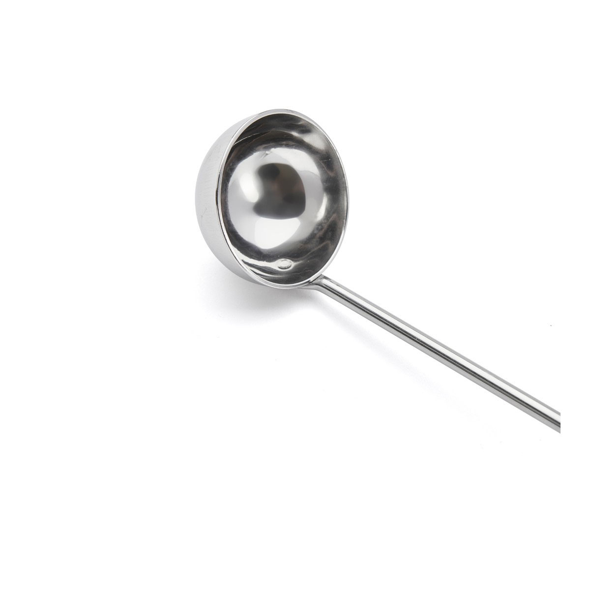 Mini-louche, produite par de Buyer, en acier inoxydable, d’une longueur totale de 27 cm et d’un diamètre de tasse de 4 cm.